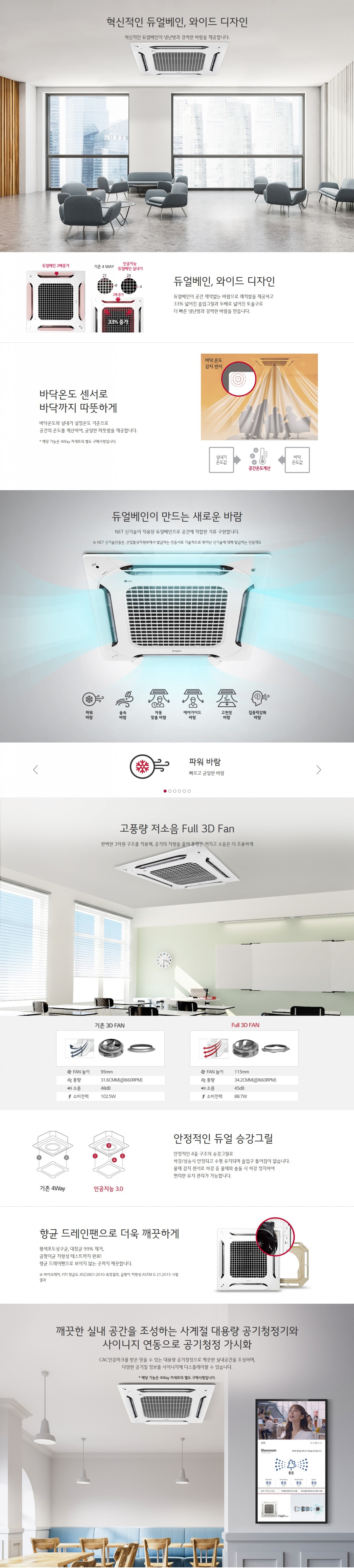 혁신적인 듀얼베인/공간 적합 기류 구현/고풍량 저소음/사이니지 연동